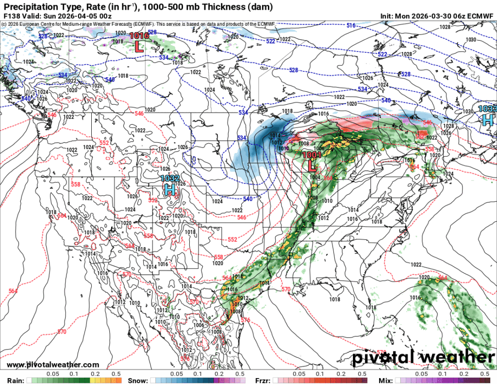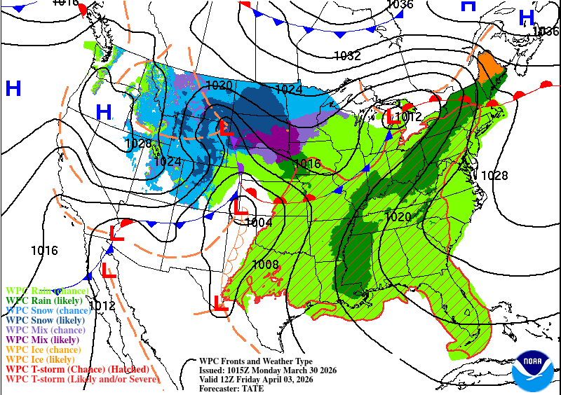 Speaking of the weekend, it’s looking like the Easter egg hunt may be a washout so far. Saturday will have another chance of scattered storms moving from the south. So far it doesn’t look like there’s much severe weather to contend with, but it’s worth keeping an eye on since these cells are ahead of the main line. The next round with the front will move in overnight into the morning hours. The line itself will last until the afternoon hours, so it looks like church and the Easter egg hunt may have to wait until the later afternoon, so keep that in mind!