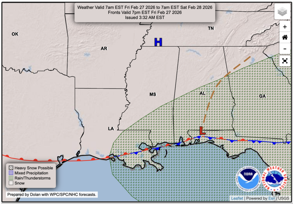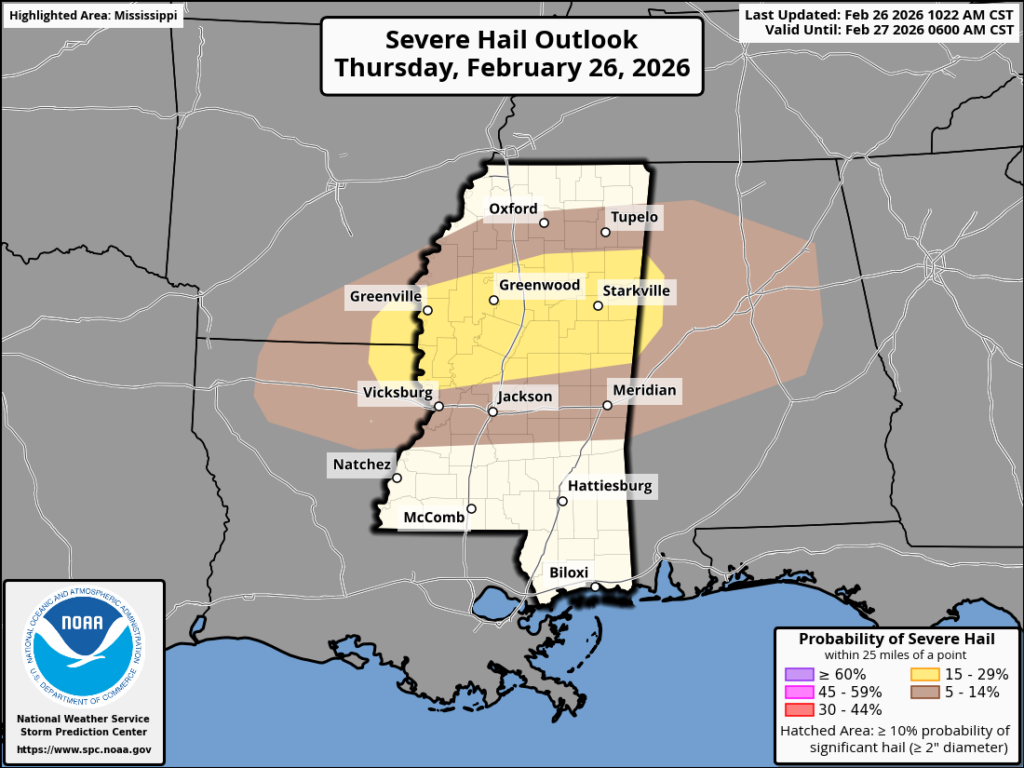 Incoming Severe Storms in Central & Northern MS/AL/LA, Followed by a Beautiful Weekend Ahead: Southern MS/AL/LA Local Weather Forecast – 2/26/26