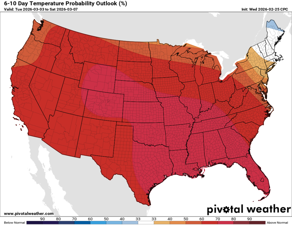 6-10 Day Temperature Probability Outlook from the CPC // Courtesy: Pivotal Weather