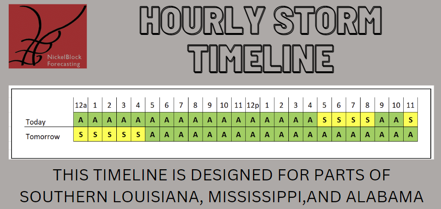 • “Take a look at the timeline chart, the best bet for rain is between 5p and 8p. Then a few lingering storms overnight.”