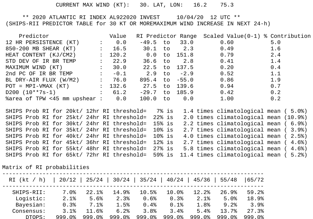 The SHIPS model shows a 59-percent chance that it gains 65kts of wind speed during the next 72 hours.