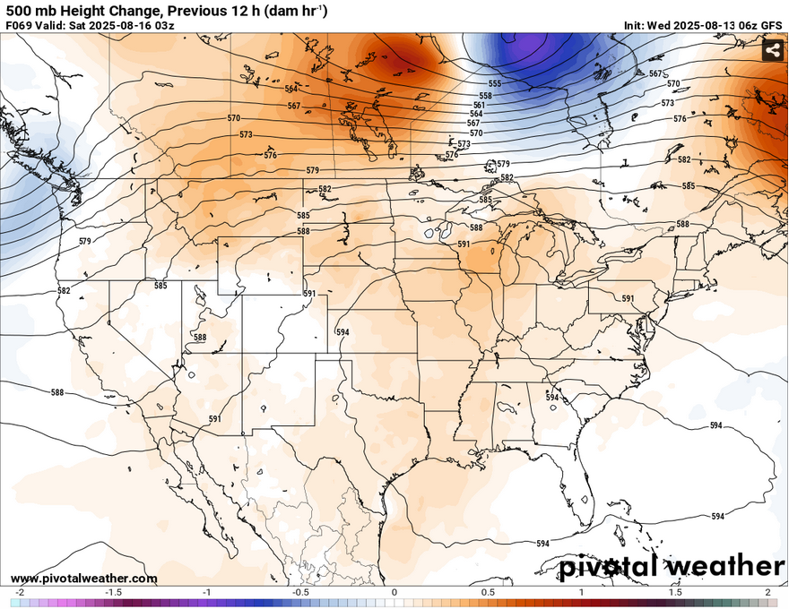 A large upper level ridge over the central and eastern US from the GFS model //Courtesy: Pivotal Weather