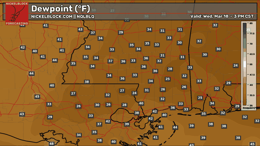 Abundant sunshine is expected on Thursday with temperatures reaching the lower 70s. Dew points will rise into the lower 50s, which is more humid than Wednesday, but not uncomfortable by any means. Another nice day on tap!