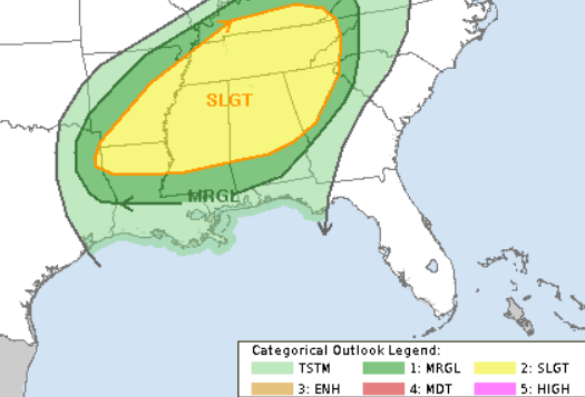 So far, it looks like the worst of the weather should stay north of I-20. Again. The poor folks across Arkansas, northern Mississippi, northern Alabama, and Tennessee don’t need any more severe weather, but, sadly, that looks to be on the menu.