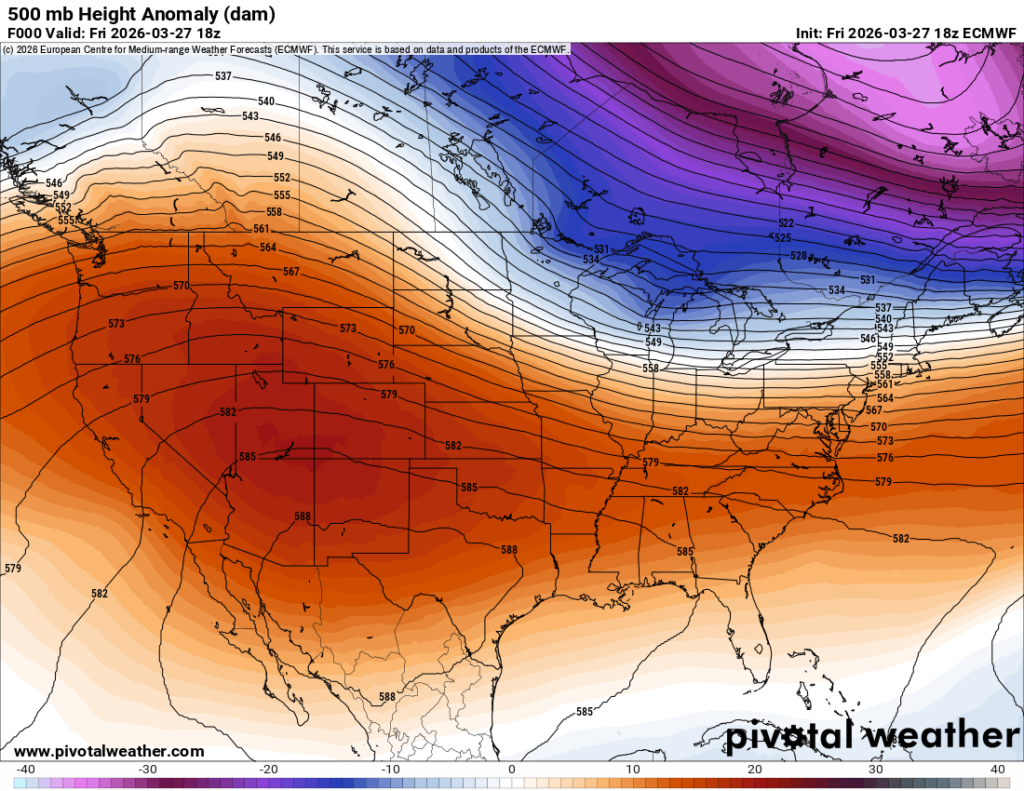 Current 500 mb Height Anomaly Map // Courtesy: Pivotal Weather