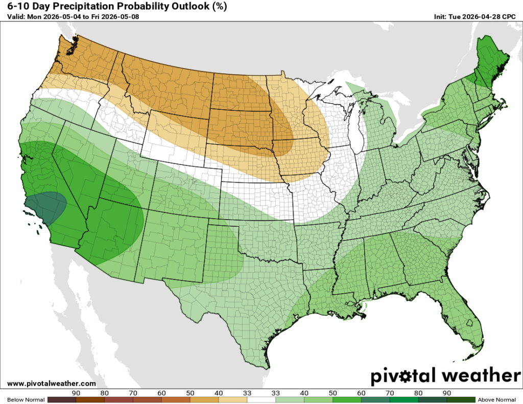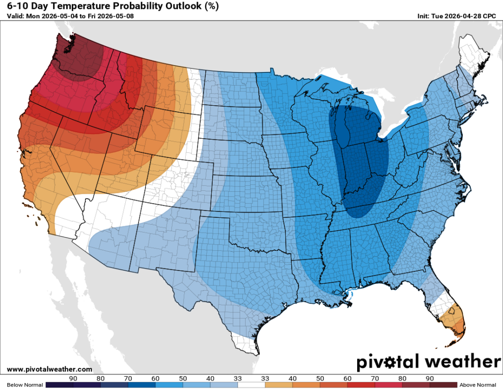 We’ll see more rain on Friday as the front stalls and stretches over the southeast, and into the first half of Saturday, according to current guidance. The rest of Saturday and Sunday are expected to be dry and definitely cooler than average, as is the first half of next week, which is why the 6-10 day outlook shows some blue over our region! This isn’t a huge cold shot by any means, since we’ll only be a few degrees below average, but you should certainly feel the relief, since we’ve been so much above average recently. The rainy pattern wants to stick around, though!