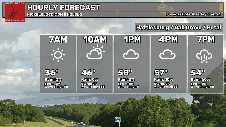 Mixed Rain Chances for Today and Tomorrow, Ice Possible in Some Areas Saturday – Weekend Forecast for South MS/LA/AL 1/21/26