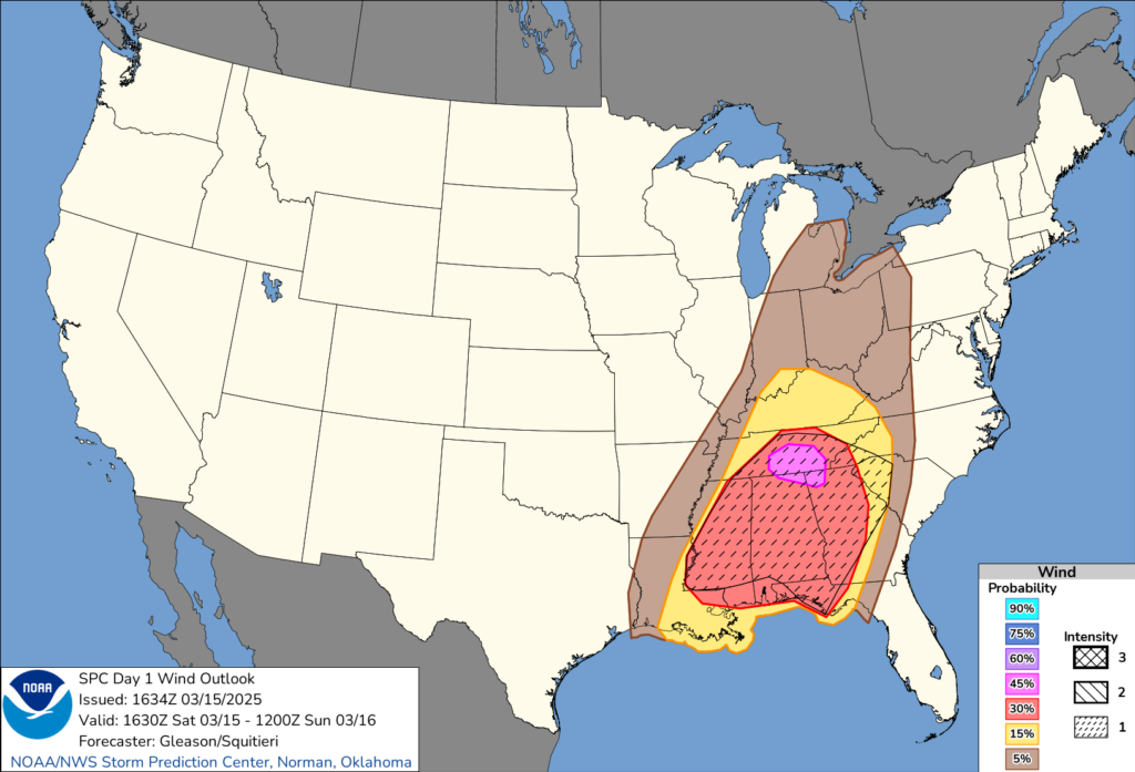 Wind outlooks now also include intensity levels, which help pinpoint where the highest wind gusts could occur. They have also added the option for a 90% probability of severe wind gusts! Instead of seeing only a highlighted, significant, severe area the old way, or just a single hatched zone, you may now see one of these CIG labels, which will provide more context.