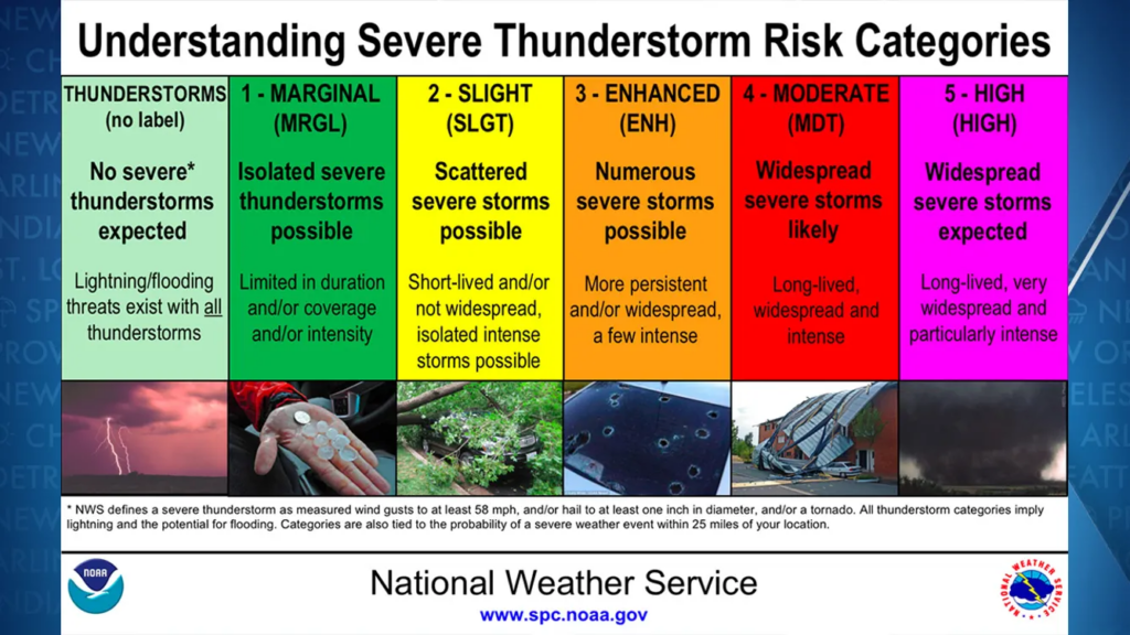 The overall categories are still the same, so you will still see Marginal, Slight, Enhanced, Moderate, and High Risk. That part is not changing. What is changing is the added detail within the outlooks, along with the updated graphic style. No more blurry maps or weird arrows! It’s more visually pleasing, in my opinion.