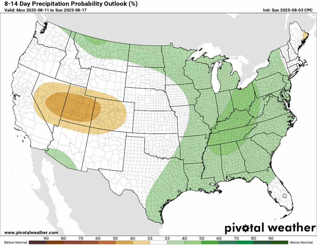 The pattern will indeed flip when we look into the next 8-14 days. Everyone is expected to see above normal temperatures, with a high probability of the Midwest, Northeast, and Southeast seeing it. The east, in general, is expected to see some increased rainfall in that two week timeframe, with the west seeing drier than normal conditions.