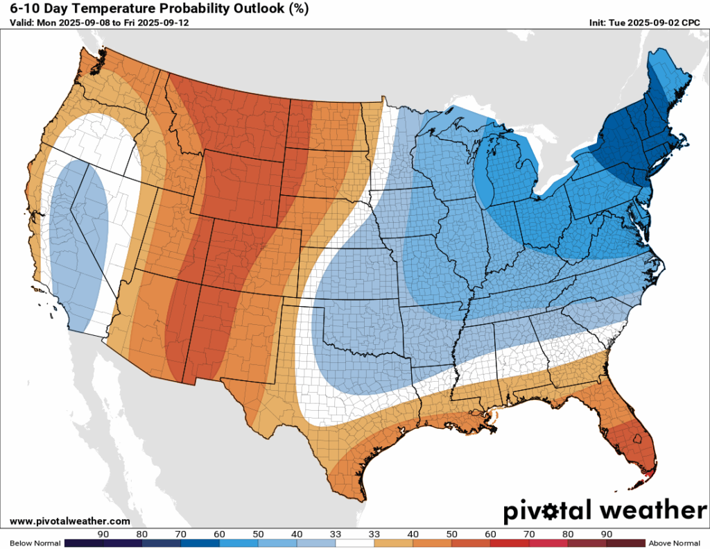 6-10 Day Temperature Probability Outlook from the CPC // Courtesy: Pivotal Weather
