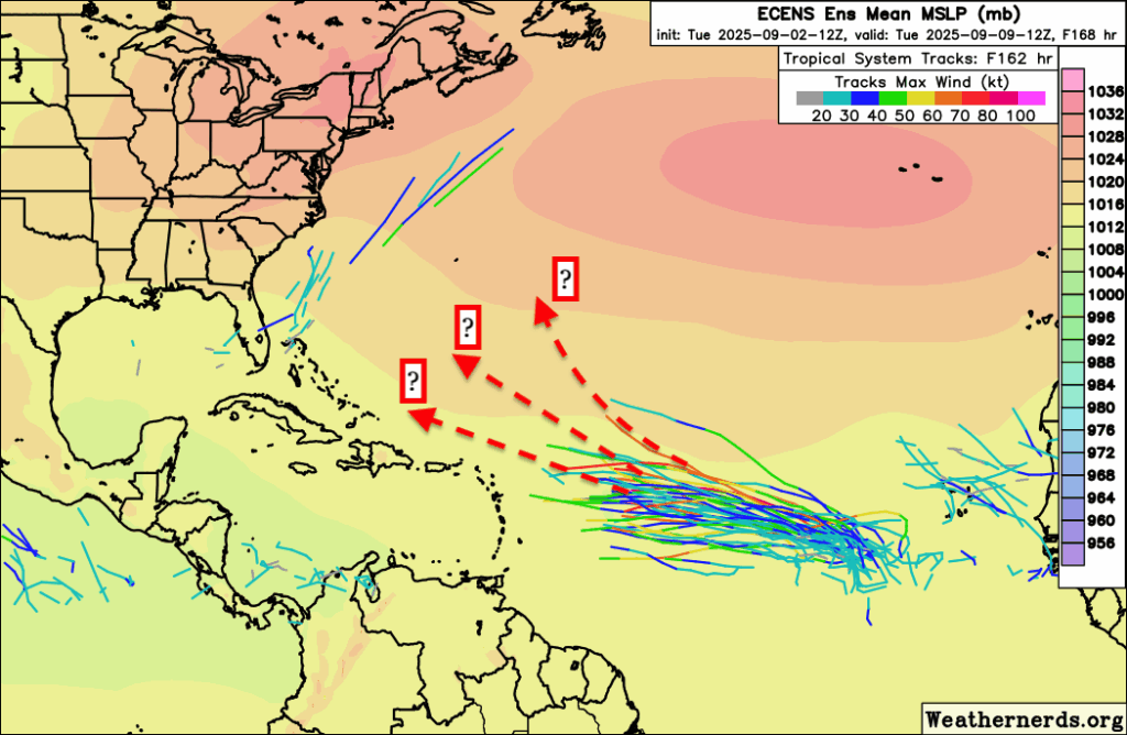 Spaghetti Plots for Tropical Wave off of Africa and Potential Tracks // Courtesy: Weather Nerds