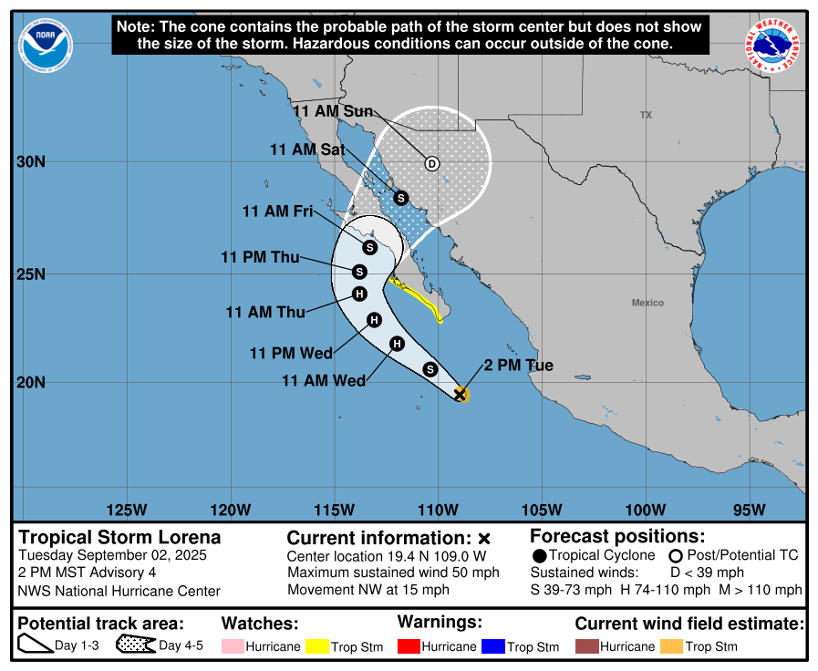 NHC Forecast Cone for Tropical Storm Lorena // Courtesy: nhc.noaa.gov
