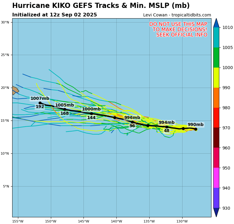 Hurricane Kiko GEFS Tracks and Intensity // Courtesy: Tropical Tidbits