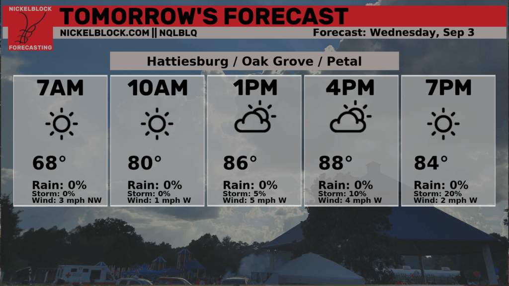 Overall dry and warm the next few days: Southern MS/AL/LA Local Weather Forecast – 9/2/25