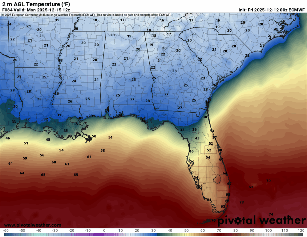 We’ll feel a taste of winter on Sunday with blustery winds and highs in the low 50s. I would bring a coat and a toboggan with you if you’re going to church or out shopping. I can see a hard freeze warning coming for Sunday night as temperatures fall into the low 20s, so cover your pipes, leave the faucet running and bring your pets indoors. Monday will be fairly cold as well with highs in the mid 40s and sunny skies. Overnight, we’ll likely have another freeze warning with lows in the mid 20s.
