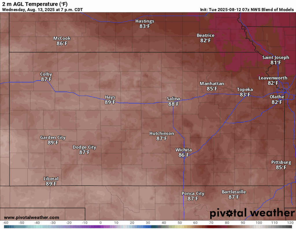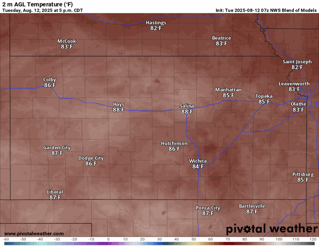 Temperatures today will still be below average for this time of year, topping out in the low to mid 80s this afternoon, with winds out of the north-northwest at around 5 mph. Overnight lows will be cool, with low temperatures in the low to upper 60s. By tomorrow, temperatures look to be a touch warmer, especially out west with high temperatures in the low to upper 80s in the afternoon. Winds will be out of the east-southeast at around 5 to 10 mph. Low temperatures tomorrow night will be a touch warmer, with low temperatures in the mid 60s to low 70s.