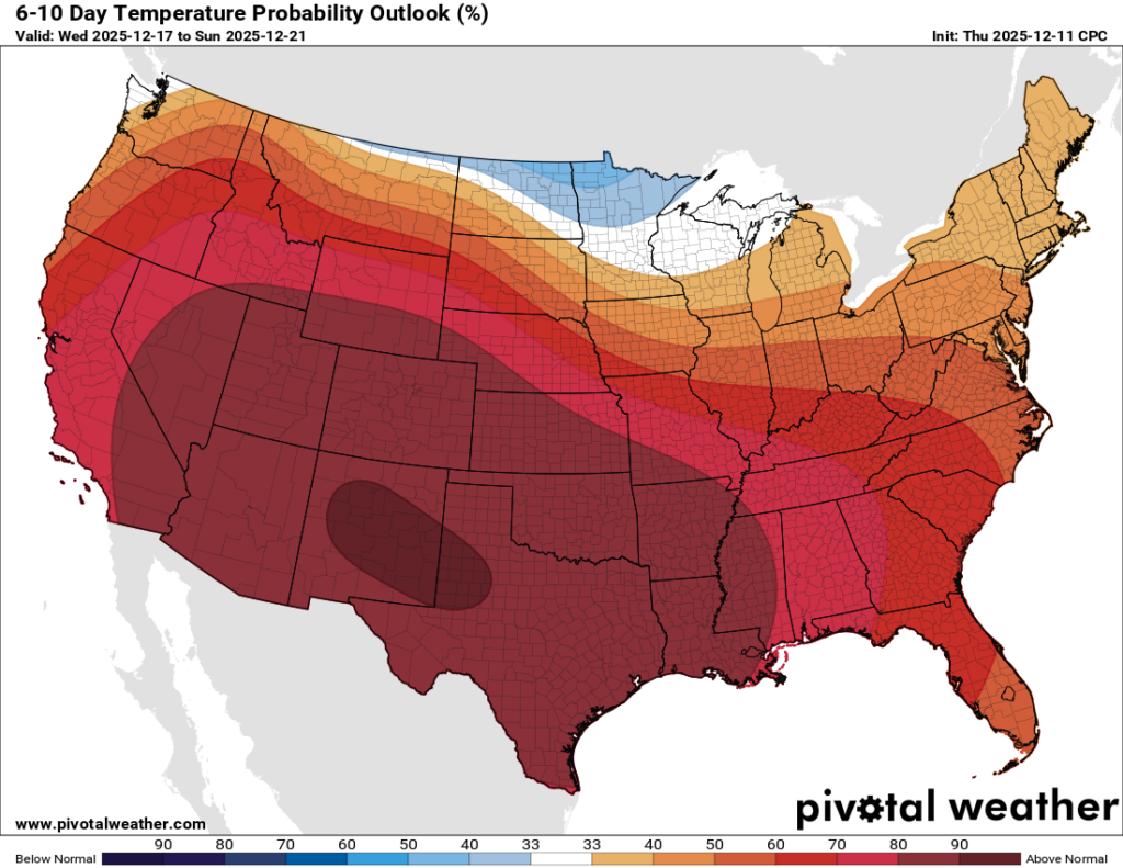 6-10 Day Temperature Probability Outlook from the CPC // Courtesy: Pivotal Weather