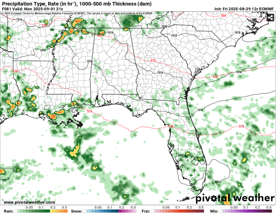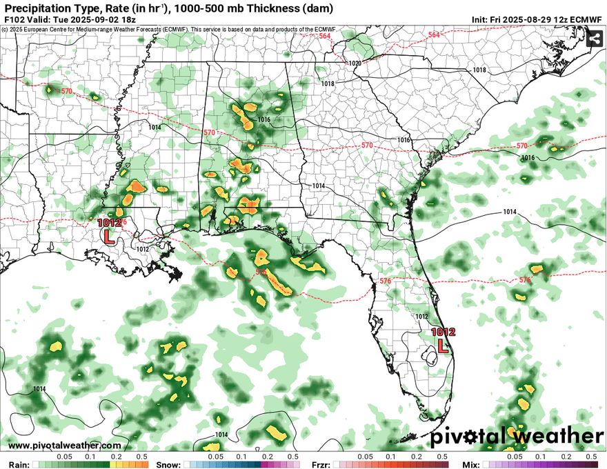 As the front begins to dissolve, Labor Day will be a warm one with some thunderstorms possible around the coast and southern parts of Louisiana. These will likely hit around the mid afternoon and rain themselves out. As we roll into Tuesday, the front I mentioned earlier from the Rockies will move in bringing another chance of scattered storms across much of the tri-state area starting in the early morning to afternoon hours.