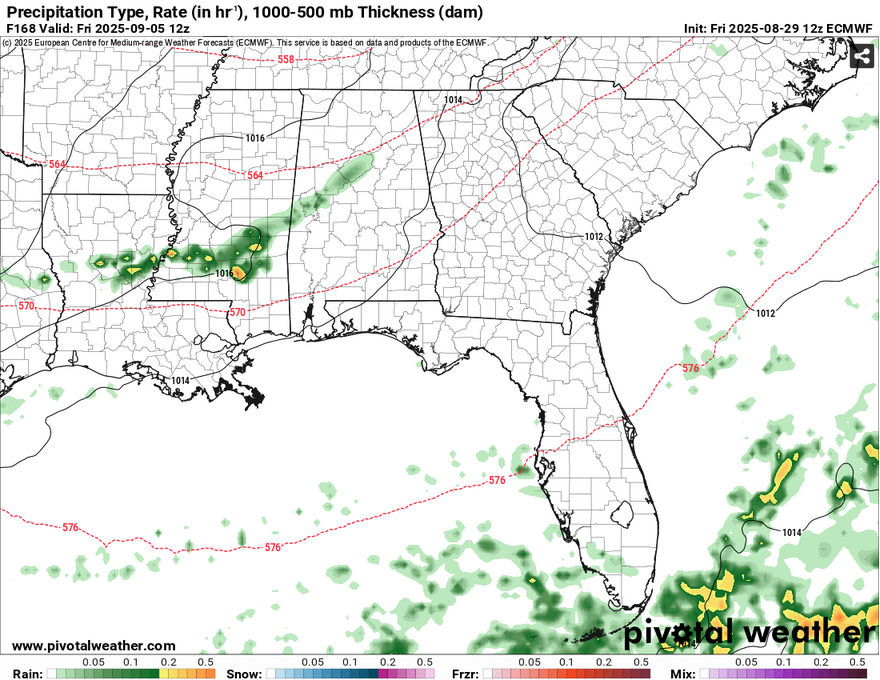 Remember that big trough I mentioned earlier? Well, just branching off of it is a small MCS that will roll into the Deep South by Friday. This doesn’t look to be severe and just a tail of that system. Expect a small line of showers and thunderstorms Friday and a fairly dry and warm weekend afterwards.