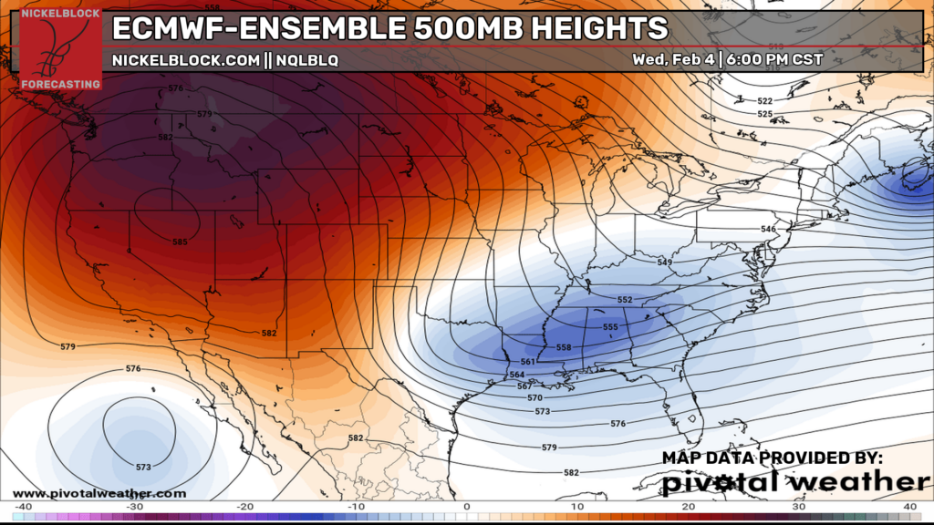 We’re not looking at much of a rain chance for this weekend, and temperatures are looking near or slightly above normal for the first time in a while. Highs on Saturday will be in the lower 60s, and upper 60s on Sunday. Sunny skies are expected on both days. Going into next week, temperatures in the 70s will be back! As previously mentioned, the area of ridging that’s been over the west will be sliding to the east, which we will feel the influence of for the first 3 weeks of February. Winter is certainly not over, as cold air shots are still plausible before winter’s end.