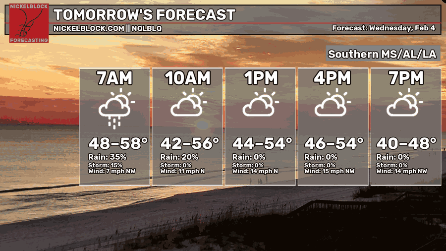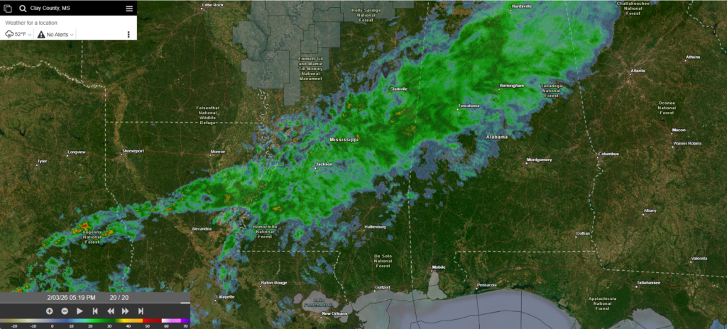 Rainy Night, Clearing Up by Morning: Southern MS/AL/LA Local Weather Forecast – 2/3/26