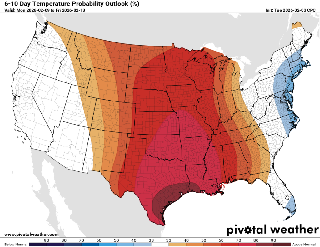 6-10 Day Temperature Probability Outlook from the CPC // Courtesy: Pivotal Weather