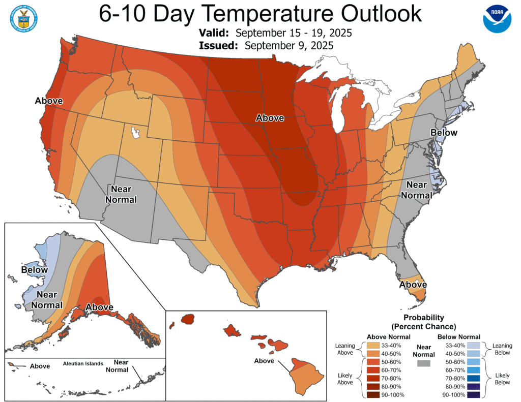 The wind pattern will take a slight change as well as a surface high builds over the mid-Atlantic and eventually the southeast. Winds will shift from the northeast today to the east northeast by Friday and will be fairly calm. Clouds will be few and far in between. Temperatures will make a gradual climb during the day but remain consistent at night. Lows will be in the mid 60s for tonight and tomorrow before climbing into the upper 60s for the rest of the weekend. The good news is, the humidity will stay low as dewpoints will only top out in the low 60s which also means the heat index won’t climb much past the high temperature. Daily temperatures will rise from around 90 today to the low 90s and eventually the mid 90s by Sunday. Still, be sure to pack sunscreen and electrolytes if you’re out working or enjoying the outdoors.