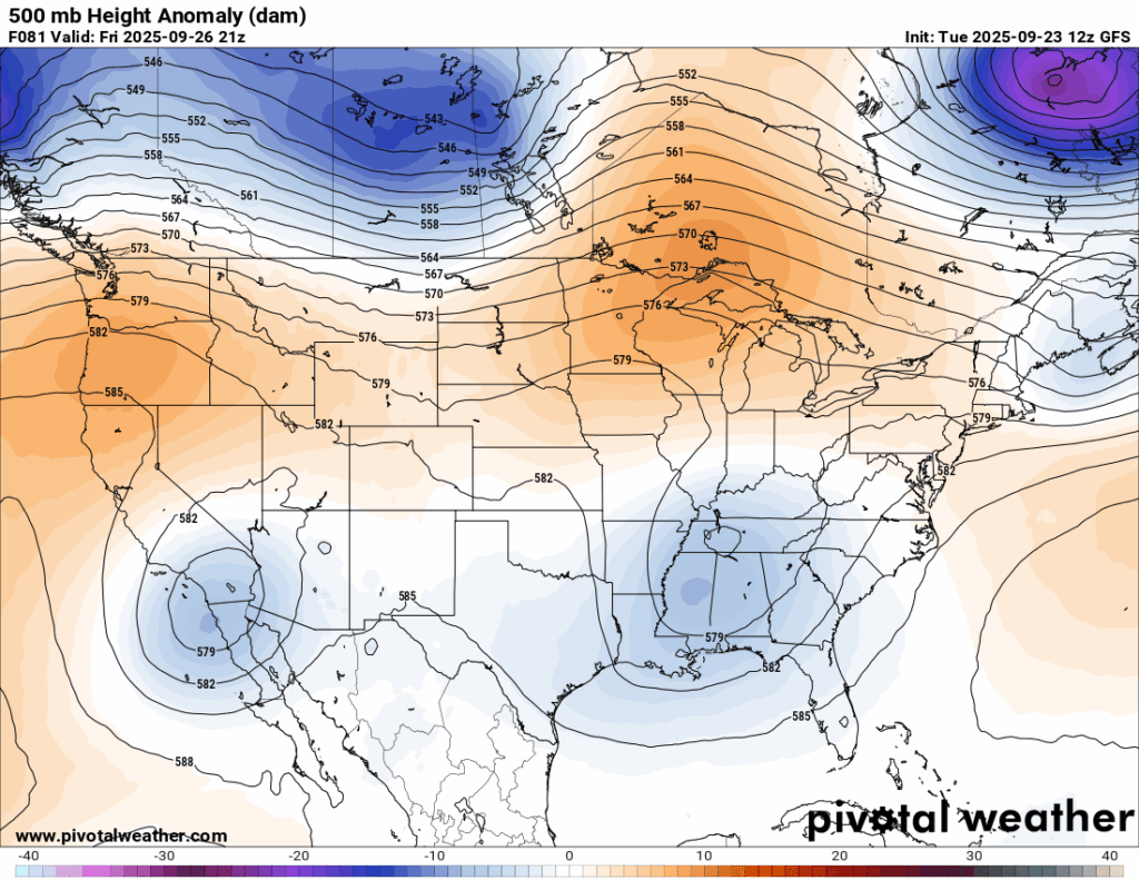 500 mb Height Anomalies for Friday // Courtesy: Pivotal Weather