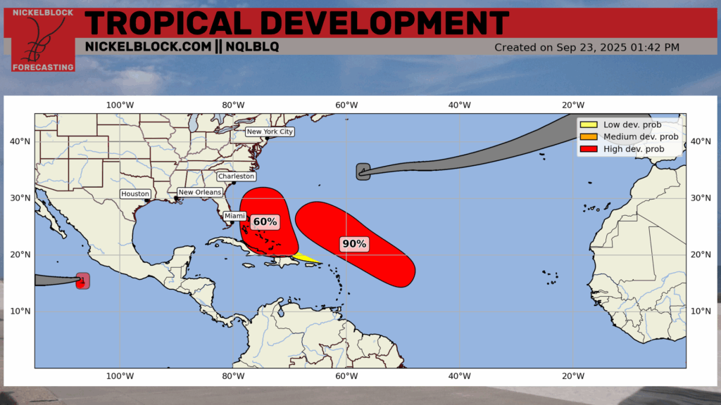 We also have two Invest areas close to the US, both with a high chance of development. Let’s take a dive into both of those: