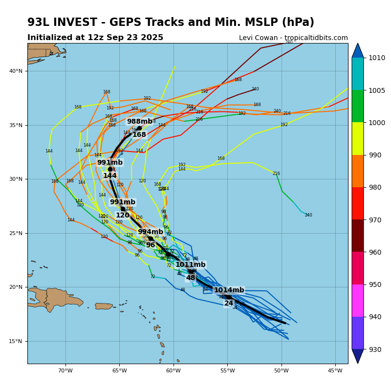 GEPS Model Track Guidance for Invest 93L // Courtesy: Tropical Tidbits
