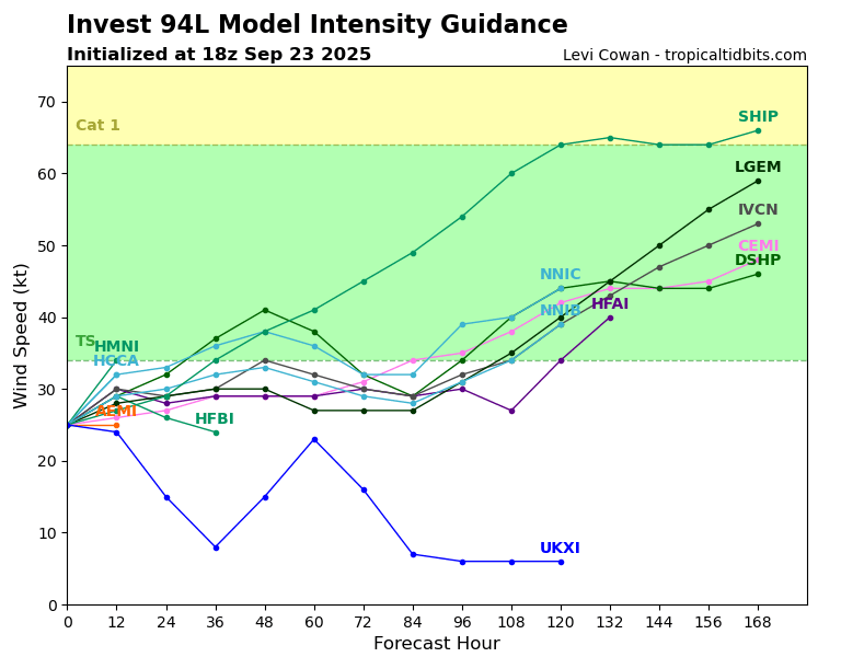 Model Intensity Guidance for Invest 94L // Courtesy: Tropical Tidbits
