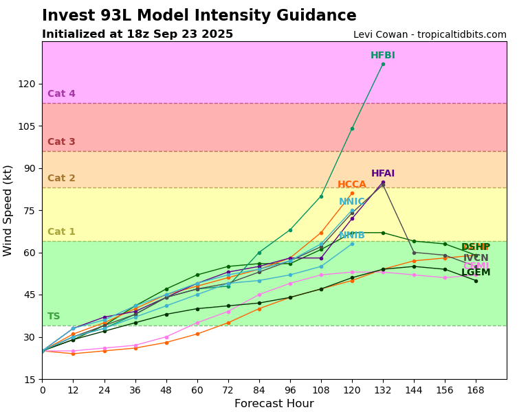 Model Intensity Guidance for Invest 93L // Courtesy: Tropical Tidbits