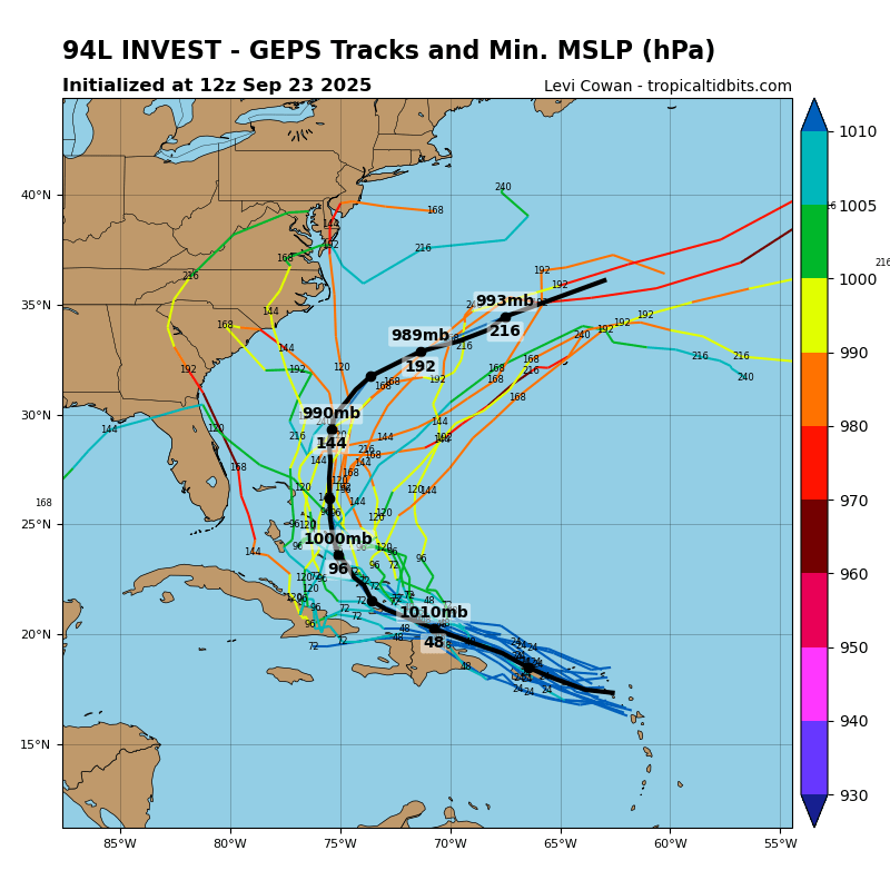 GEPS Model Track Guidance for Invest 94L // Courtesy: Tropical Tidbits