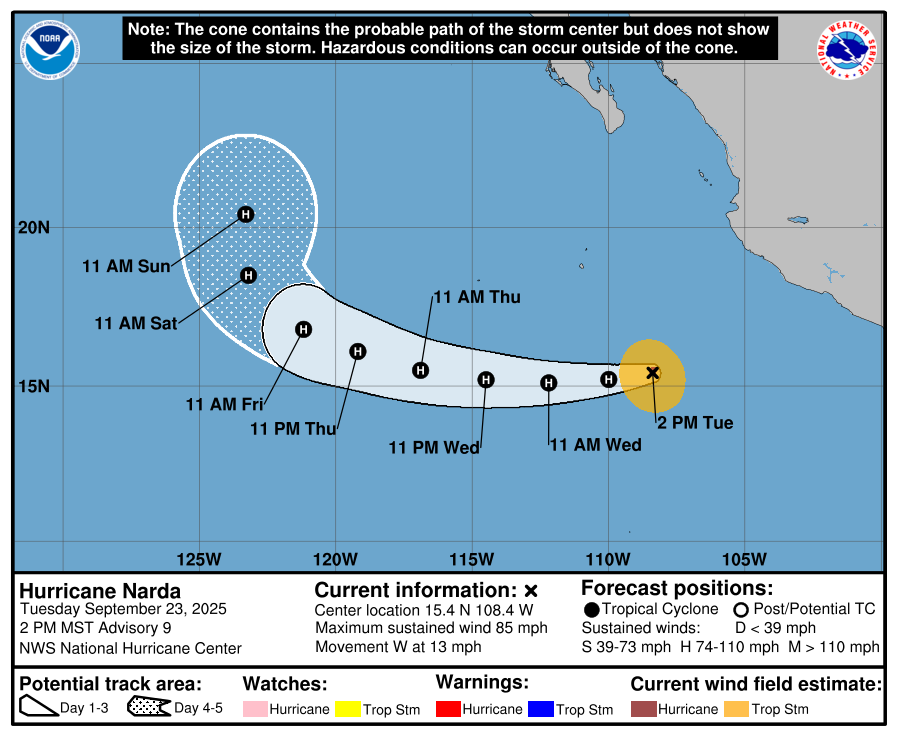 NHC Forecast Cone for Hurricane Narda // Courtesy: nhc.noaa.gov