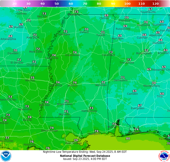 Slight, slight cooldown: Southern MS/AL/LA Local Weather Forecast – 9/23/25