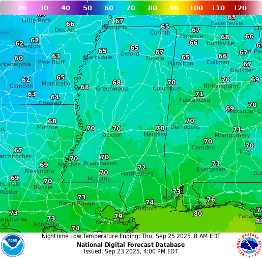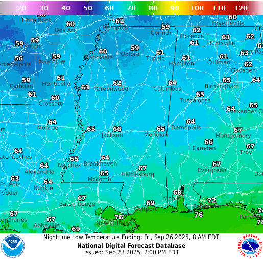 Low Temperatures for Thursday 9/25 // Courtesy: graphical.weather.gov