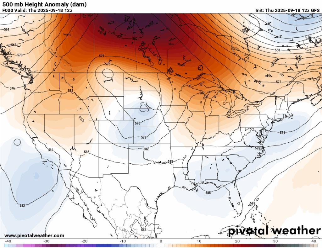 Well, it turns out that there just isn’t enough moisture to work with to produce decent rain. The reason for this is that we have winds aloft from the northwest, which is more continental air compared to when we have southerly winds from the Gulf that bring us lots of moisture.