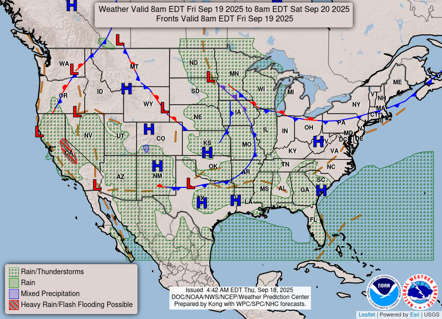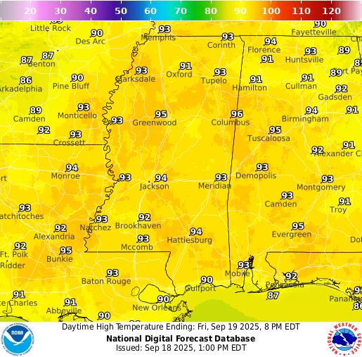 Friday: A slight chance of showers and thunderstorms after 1pm. Sunny with highs in the mid 90s. Winds light, becoming northeast around 5 mph. Chance of rain 30 percent.