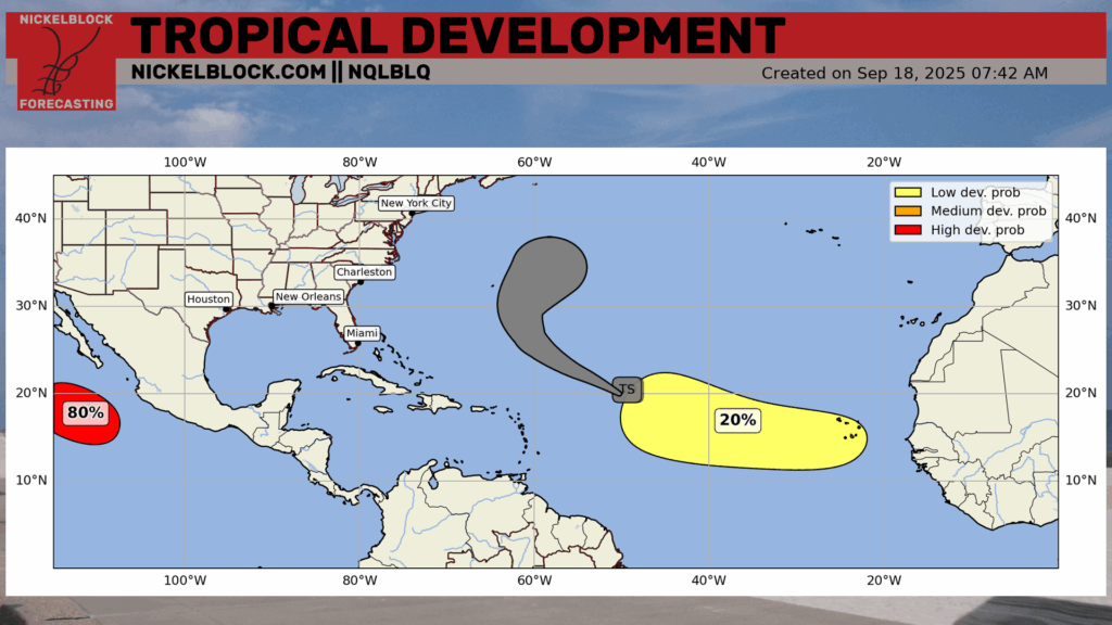 Behind Gabrielle, there is still an area to watch that has a 20 percent chance of developing with the next 7 days. It’s a small chance of development, and it’s hard to tell where it would track before it even forms.
