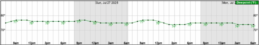 Hourly Dew Points from Saturday 7/26-Sunday 7/27 // Courtesy: NWS Hattiesburg: forecast.weather.gov