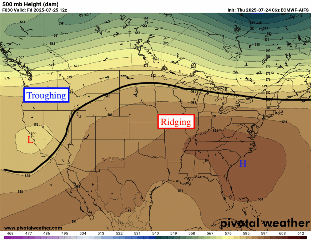 500 mb Heights for Today 7/25/25 // Courtesy: Pivotal Weather