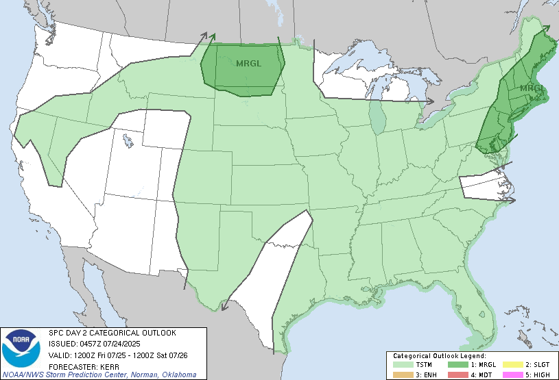 SPC Severe Weather Outlook for Today 7/25/25 // Courtesy: spc.noaa.gov