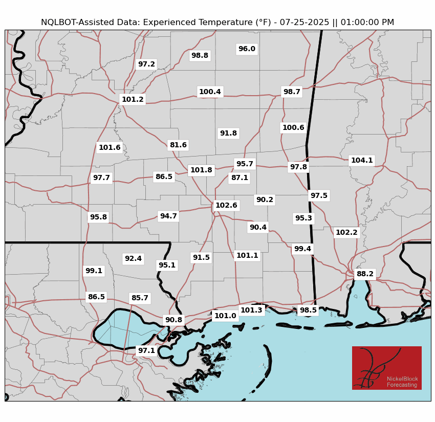 Experienced Temperatures for Today 7/25/25