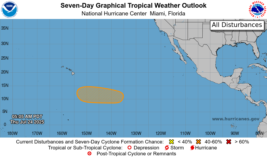 What’s going on in the tropics? There are two tropical disturbances that we are tracking, one in the Gulf and one in the eastern Pacific. In the Pacific, there is a medium chance of development in the next 7 days (40 percent). This is the closest tropical disturbance to Hawaii so far this season, but is expected to track just to the south of the Hawaiian islands.