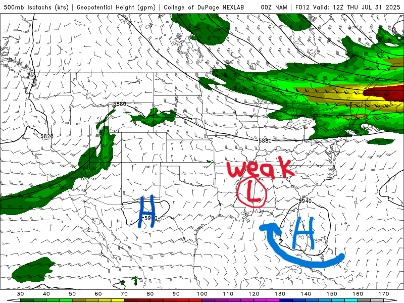 500 mb map for Thursday from the NAM model. //Courtesy: College of DuPage