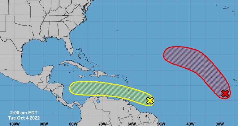 Looking out into the tropics, the wave heading toward the Caribbean is still out there, but the NHC isn’t as enthusiastic about its chances of development.
