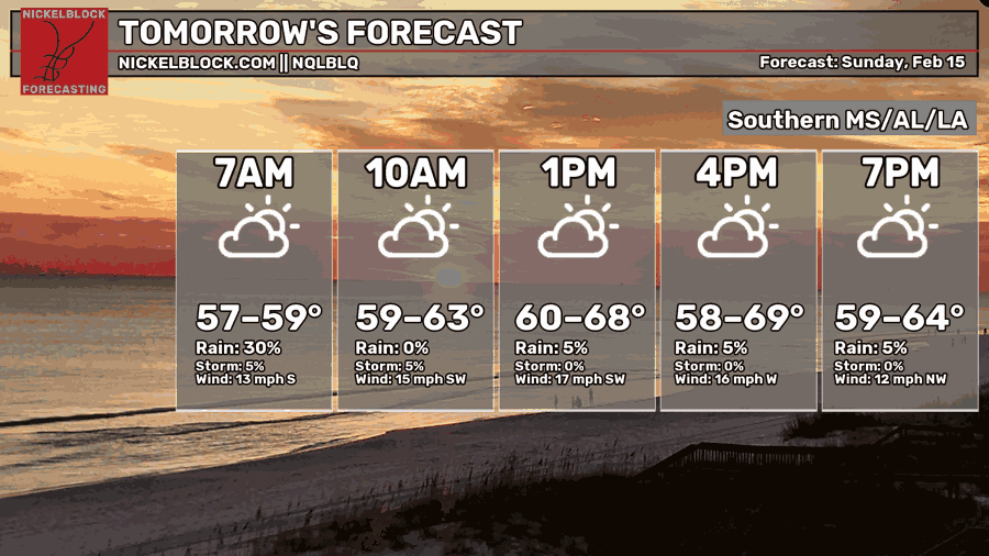 After a cool start for some folks, nearly everyone will rebound nicely today into the 60s and 70s. It will be warmer the farther south you travel. If you’re headed to New Orleans for a parade, prepare to be warm and humid.