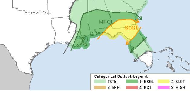We have the risk for storms tonight as we move through the overnight hours. The Storm Prediction Center has parts of the area under a Slight Risk and other sections under a Marginal risk for severe weather.