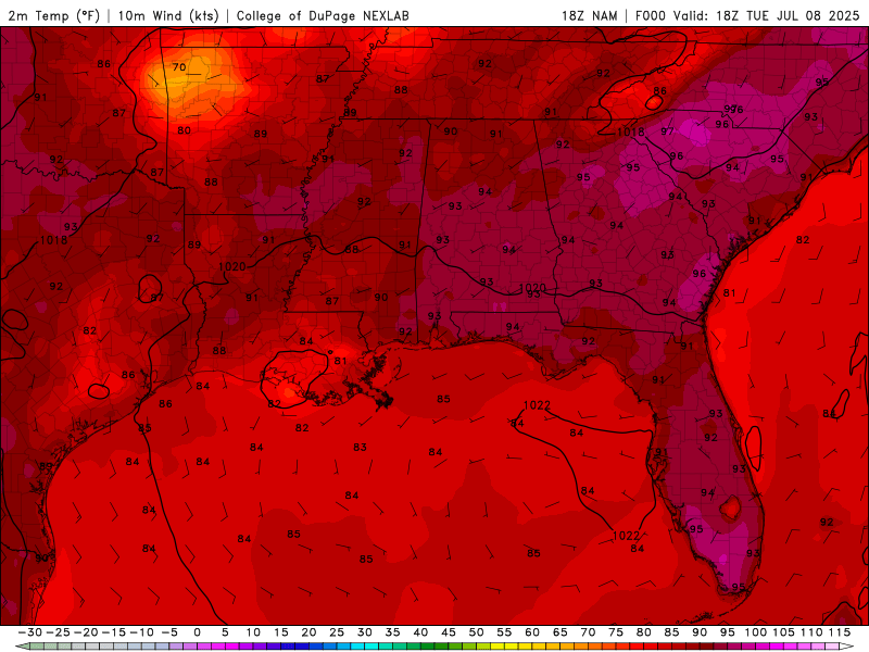 Surface temperatures and dew points remain elevated, with highs in the upper 80s to low 90s and dew points in the mid to upper 70s. This will push heat indices into the 100–105°F range. A moist and unstable air mass continues to dominate, with scattered to numerous afternoon thunderstorms expected each day. These storms will be driven by diurnal heating, Gulf moisture advection, and weak upper-level impulses. Storms may be slow-moving, leading to localized flooding, especially in urban areas.